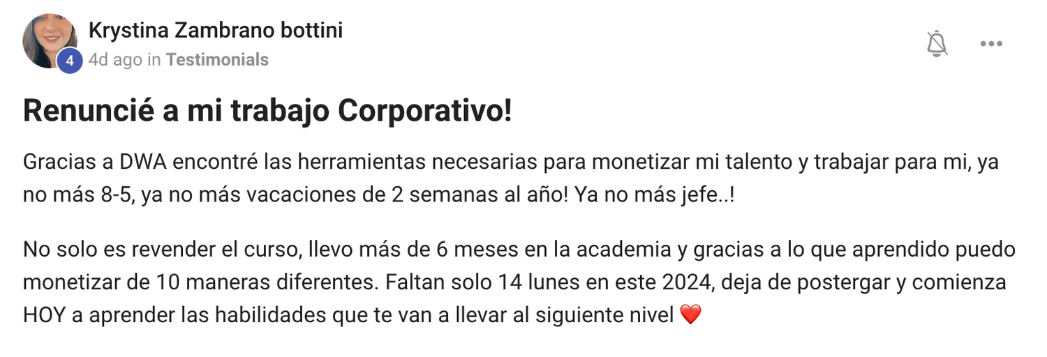 Ánimo, yo también dudé si dar el siguiente paso por desconocimiento, desconfianza y otro millón de miedos, pero mi mayor miedo era tener que volver a ser empleada de una empresa, perder mi libertad y no poder ser una mamá presente. Estoy aquí para ti, para acompañarte junto con una comunidad increíble de personas que quieren verte en la cima!